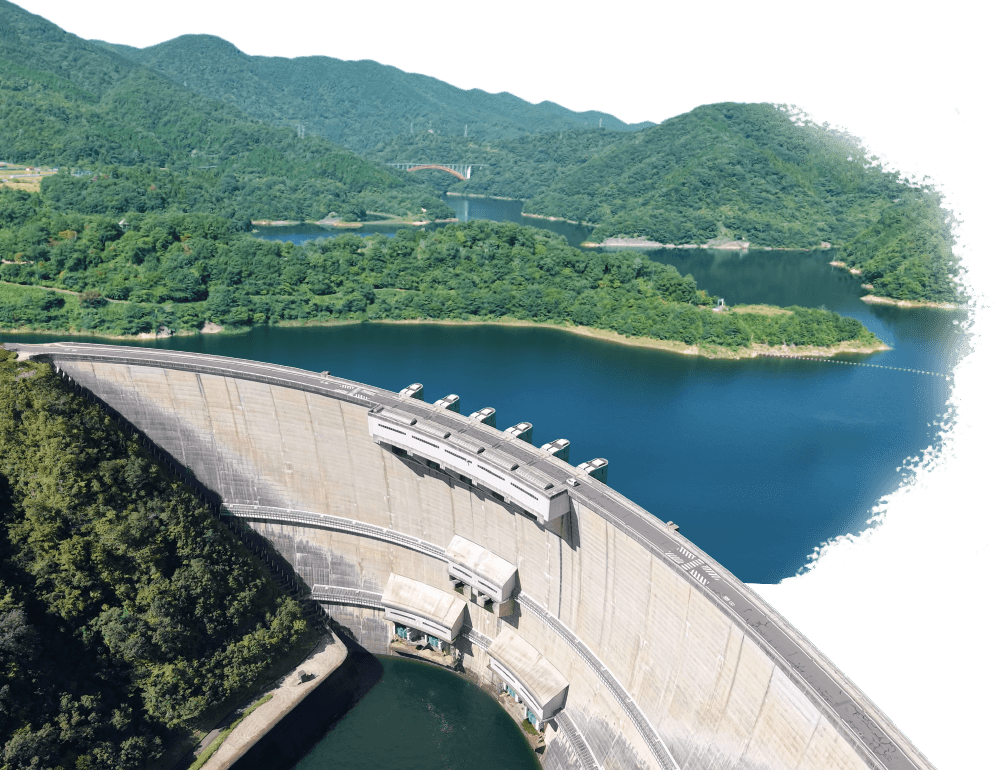 静かな湖面と、そびえ立つ巨大ダム。
